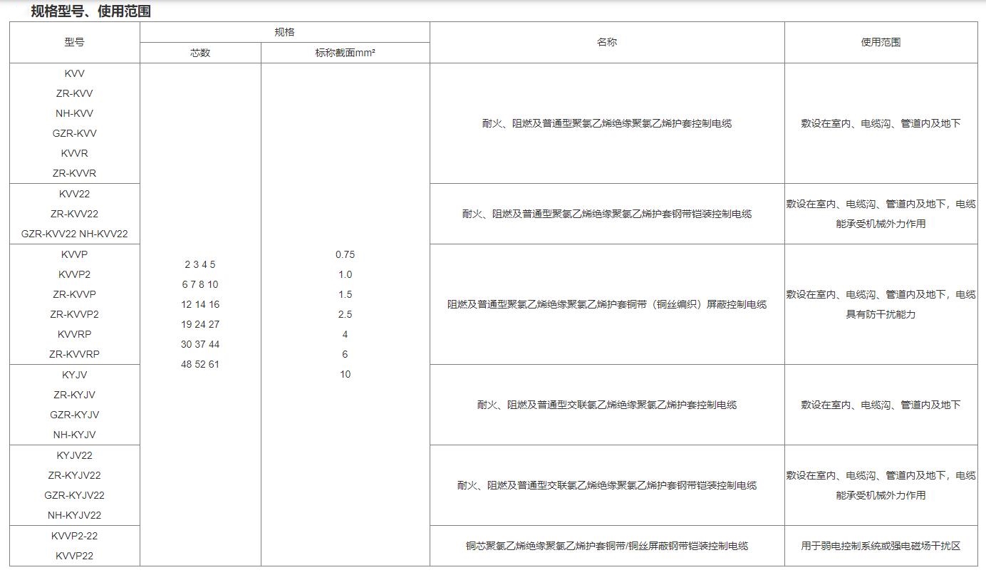 額定電壓450/750V聚氯乙烯絕緣控制電纜和450/750V交聯(lián)聚乙烯絕緣控制電纜分別用于450/750V及以下控制、監(jiān)控回路及保護線等場所。聚氯乙烯絕緣控制電纜的工作溫度為70℃,交聯(lián)聚乙烯絕緣控制電纜的工作溫度為90℃。