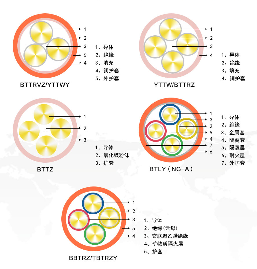 BTTVZ:銅芯氧化鎂絕緣重載銅護(hù)套聚氯乙烯外護(hù)套阻燃防火電纜。