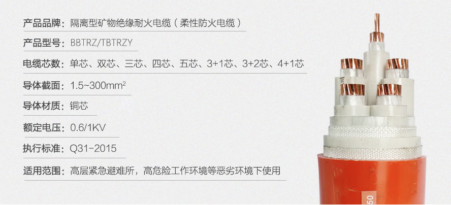 BBTRZ/TBTRZY:銅芯礦物質(zhì)絕緣柔性礦物絕緣電纜,俗稱防火電纜。