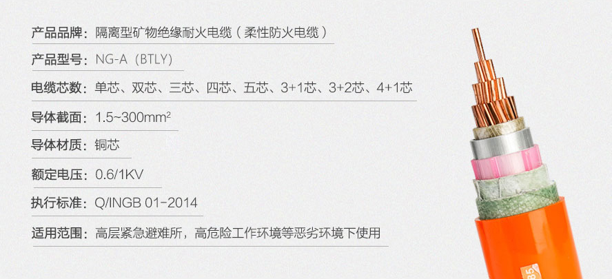 NG-A(BTLY):隔離型礦物絕緣耐火電纜。